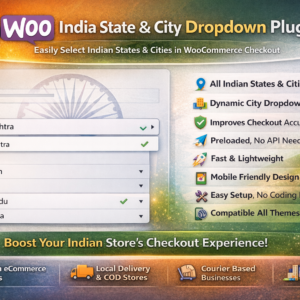 India State & City Dropdown Plugin for WooCommerce is a lightweight and efficient solution designed specifically for Indian WooCommerce stores. This plugin replaces the default state and city fields with accurate, pre-loaded Indian states and cities in a clean dropdown format, ensuring faster checkout and fewer user errors.